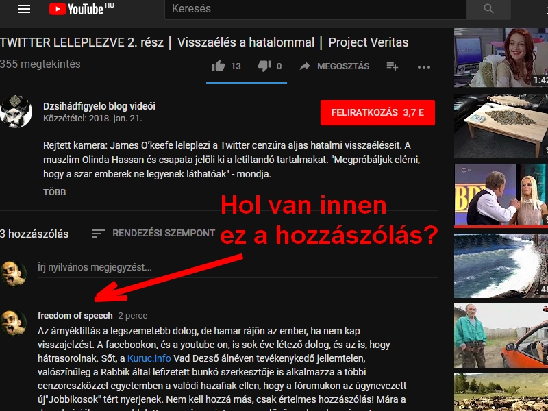 Az alábbi beágyazott videó alatt, a csatornatulajdonos hozzászólásait is cenzúrázta a Youtube rendszere: